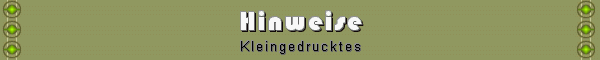 Alle Angaben in unserer Homepage wurden sorgfältig geprüft und geben den neuesten Wissensstand zum Zeitpunkt der Veröffentlichung wieder. Dennoch erfolgen alle Angaben ohne Gewähr. Für eventuelle Nachteile oder Schäden, welche aus den gemachten praktischen Hinweisen resultieren, können wir keine Haftung übernehmen. Links zu anderen Internetseiten: Mit Urteil vom 12. Mai 1998 hat das Landgericht Hamburg entschieden, dass man durch die Ausbringung eines Links die Inhalte der gelinkten Seite gegebenenfalls mit zu verantworten hat. Dies kann - so das LG - nur dadurch verhindert werden, dass man sich ausdrücklich von diesen Inhalten distanziert. Von unserer Homepage führen Links zu anderen Seiten im Internet. Für all diese Links gilt: wir möchte ausdrücklich betonen, dass wir keinerlei Einfluss auf die Gestaltung und die Inhalte der gelinkten Seiten und Foren habe. Aus diesem Grunde distanzieren wir uns hiermit ausdrücklich von allen Inhalten gelinkter Seiten und machen uns ihre Inhalte nicht zu Eigen. Diese Erklärung gilt für alle Links und für alle Inhalte der Seiten, zu denen bei uns gelinkte Inhalte führen. | |||||||||||||||||||||||||||||||||||||||||||||||||||||||||||||||||||||||